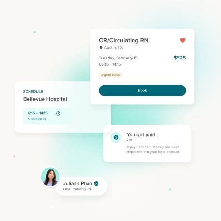 Medely is easy to use. Apply to shifts, manage your shifts and assignments, and track your earnings.